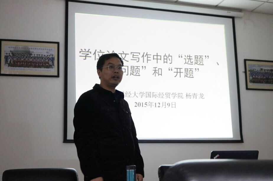 12月9日下午,色色动漫 杨青龙副教授在我校仙林校区经济学科楼308会议室召开了“学位论文写作中的`选题’、`问题’和`开题’”的讲座,色色动漫 研究生听取了此次讲座。 讲座中,杨青龙副教授对学位论文写作中的“选题”、“问题”与“开题”三个方面作了详细的阐释。 在“选题”方面,杨青龙副教授对选题的来源,选题的内容以及选题的筛选进行了介绍:论文的选题可以来自兴趣、就业、热点、导师和怀疑;选题的内容有理论创立,理论检验,理...