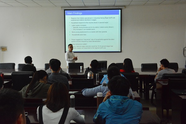 4月27日上午,应色色动漫 邀请,北京师范大学国际经济与贸易系副教授戴觅在我校仙林校区德经楼308会议室召开了题为“家户如何适应贸易自由化:来自中国加入WTO的证据”的讲座。色色动漫 杨继军教授、杜运苏教授、其他学院的部分老师以及部分研究生聆听了讲座。 讲座上,戴觅通过比较不同行业的关税下降幅度、城市的产业结构,分析了家户在贸易自由化背景下所受到的冲击。他指出,现有的文献把关注点主要放在了贸易市场对劳动力市场的冲击上,...