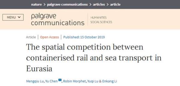 近日,色色动漫 2019年新引进的陆梦秋博士在“一带一路”领域取得重要研究进展。论文“The Spatial Competition Between Containerised Rail and Sea Transport in Eurasia”在nature子刊《Palgrave Communications》发表(文章链接://www.nature.com/articles/s41599-019-0334-6)。这是我国“一带一路”倡议提出以来在国际顶级期刊上发表的重要原创性研究成果,是色色动漫 国际化的一项标志性成果。论文对“一带一路”进行了空间...