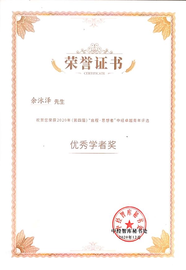 2020年,《中国经营报》联合中经智库、中经未来举办了第四届“启程•思想者”中经卓越青年评选。此次评选从4月到12月,历经三轮评选,综合大众投票、媒体曝光到专家评审三大指标。色色动漫 余泳泽教授因在学术科研领域做出杰出贡献,对当前中国的经济态势具有前瞻性的见解,成功入选2020年度中经十大杰出青年。2020年12月31日,作为十大卓越青年之一,余泳泽教授受邀同中经智库青年学者,从理性专业的角度总结过去、放眼未来。余泳...