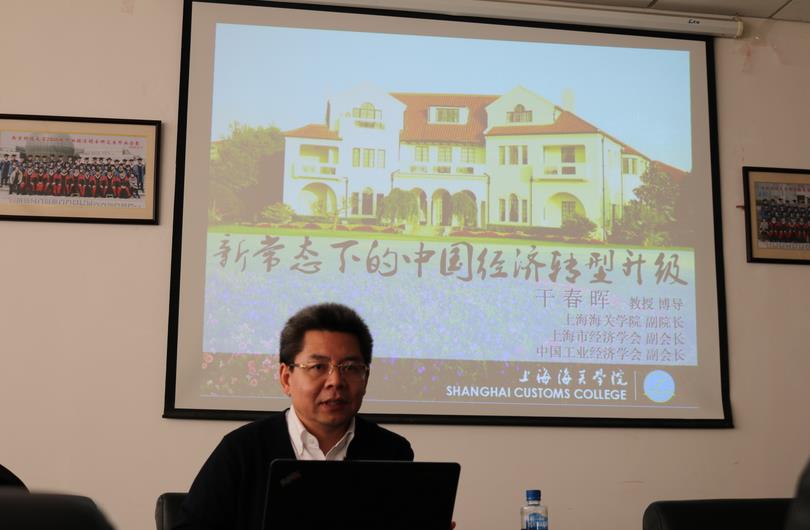 上海海关学院副院长干春晖教授做题为“新常态下的中国经济转型升级”的报告。