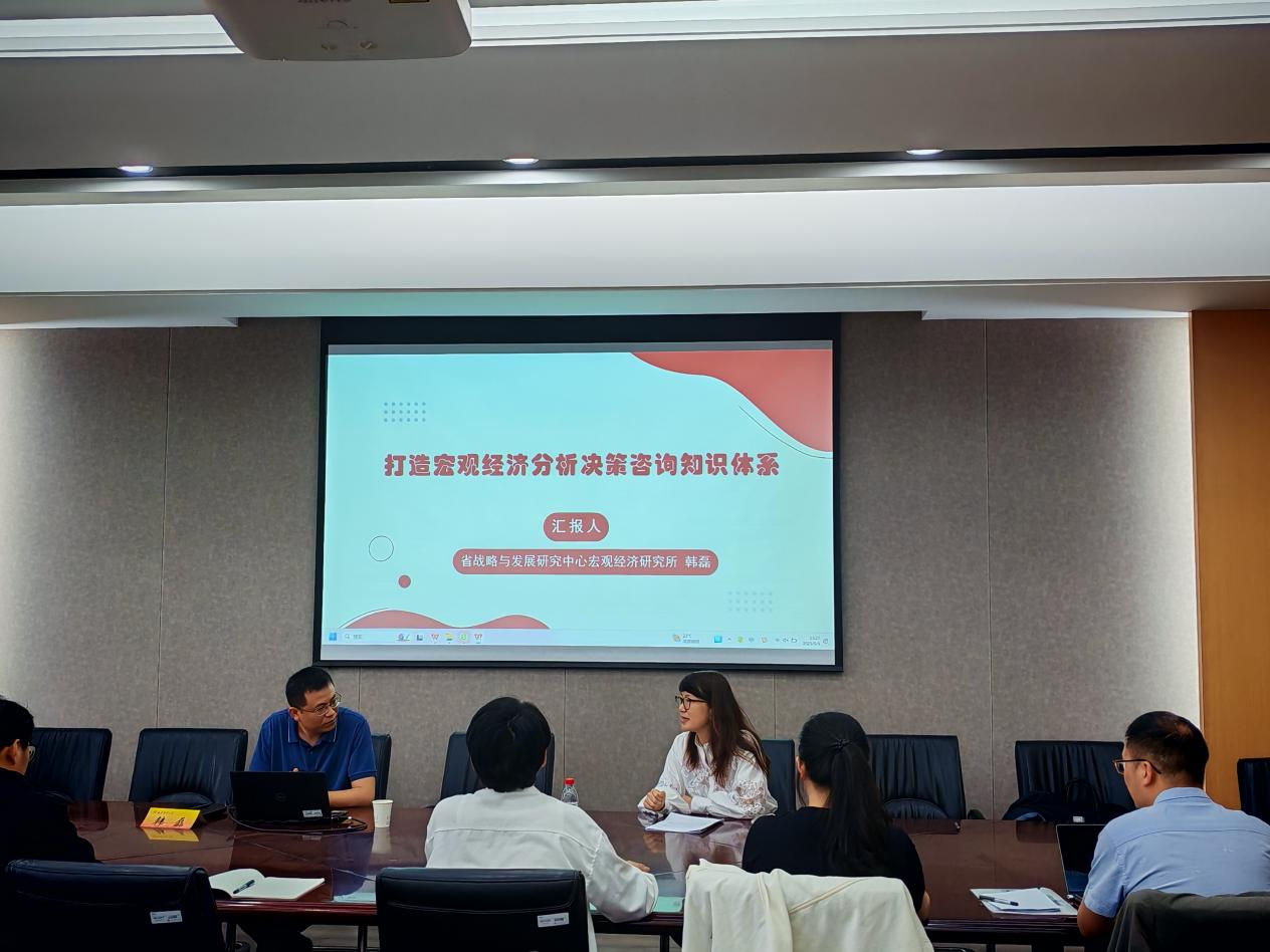韩磊所长从宏观经济研究的系统性框架出发,详细阐述了构建完整知识体系的重要性。他指出,现代宏观经济分析已发展成为一个融合多学科、多方法的综合性研究领域,需要研究者具备"理论-方法-应用"三位一体的知识结构。结合江苏省经济发展实际,韩所长深入浅出地讲解了宏观经济分析的核心要义。他以近年来江苏GDP增速、产业结构变迁、区域协调发展等具体数据为例,生动展示了宏观经济分析的基本方法。讲座内容全面涵盖了宏观经济运行的周期性规律、结构性特征以及制度性因素等基本问题,重点讲解了当前经济形势研判的"三维分析法":即短期看指标波动、中期看结构变迁、长期看制度演进。在政策研究方面,韩所长明确指出,高质量的政策研究需要处理好三对关系:理论严谨性与实践适用性的关系、全局统筹与局部特色的关系、短期效应与长期影响的关系。