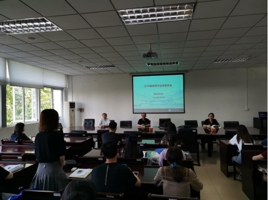在德经楼308会议室召开毕业生党员座谈会。学院党委书记张阳军、学院院长宣烨、院长助理杨智华出席了会议,学院2020届辅导员老师和毕业生党员参加了座谈会。