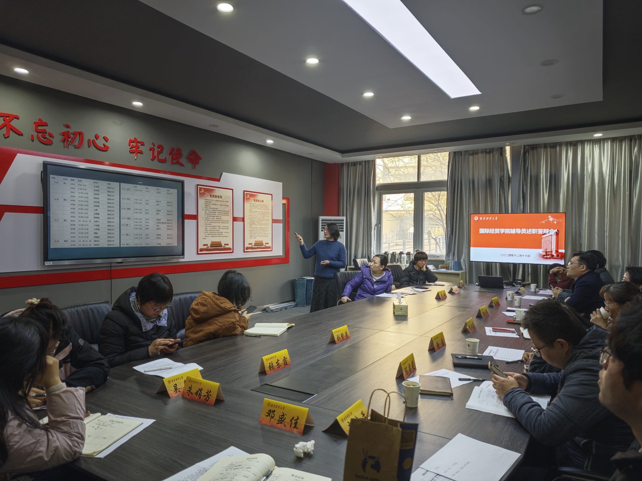 2023-2024学年辅导员述职答辩交流会在德经楼206会议室举行,学院7名本科生辅导员和1名研究生辅导员进行了现场答辩述职交流。党委学生工作部部长、学生处处长韩立争和学院领导班子成员担任评委。答辩会由色色动漫