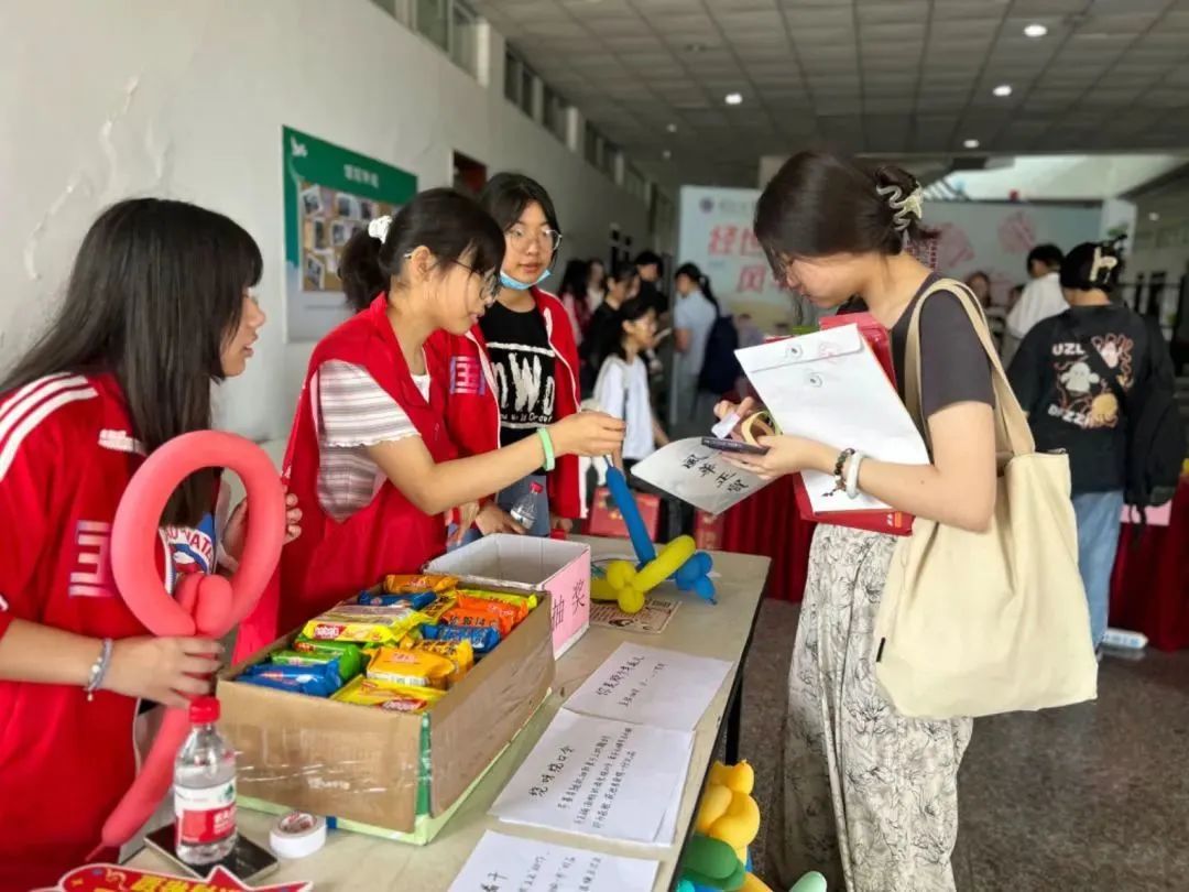 展板旁的游戏区又有别样一番景象。“同学快来!一起做任务!赢礼物!”学院精心设计了协同游戏,引导新生们共同按要求摆出打卡姿势,他们或相互支撑,做出“花开”的形状;或手拉手组成 “八芒星”的图案,或展开双臂,拥抱新征程......家长朋友们也积极参与其中,和孩子们有爱互动。有趣的游戏环节瞬间就拉近了同学间的关系,欢声笑语弥漫着整个大厅,洋溢着热闹的氛围。