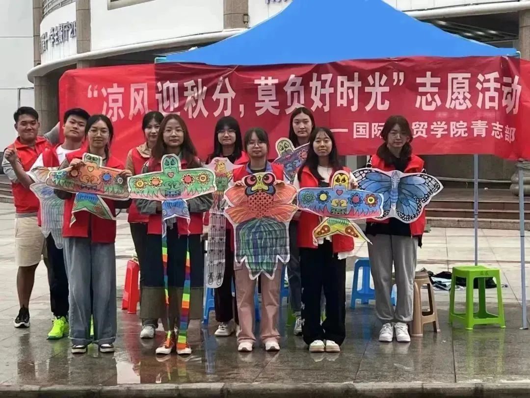 于中苑食堂门口举办了“凉风迎秋分,莫负好时光”风筝制作活动。