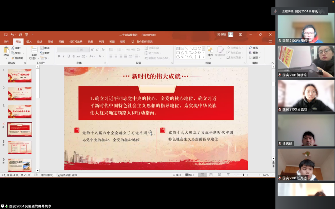 1月9日,党的二十大精神师生宣讲团成员国贸2004的吴俐颖同学从新时代的伟大成就、深入学习宣传贯彻党的二十大精神、新时代新要求新标准三个方面入手,号召色色动漫