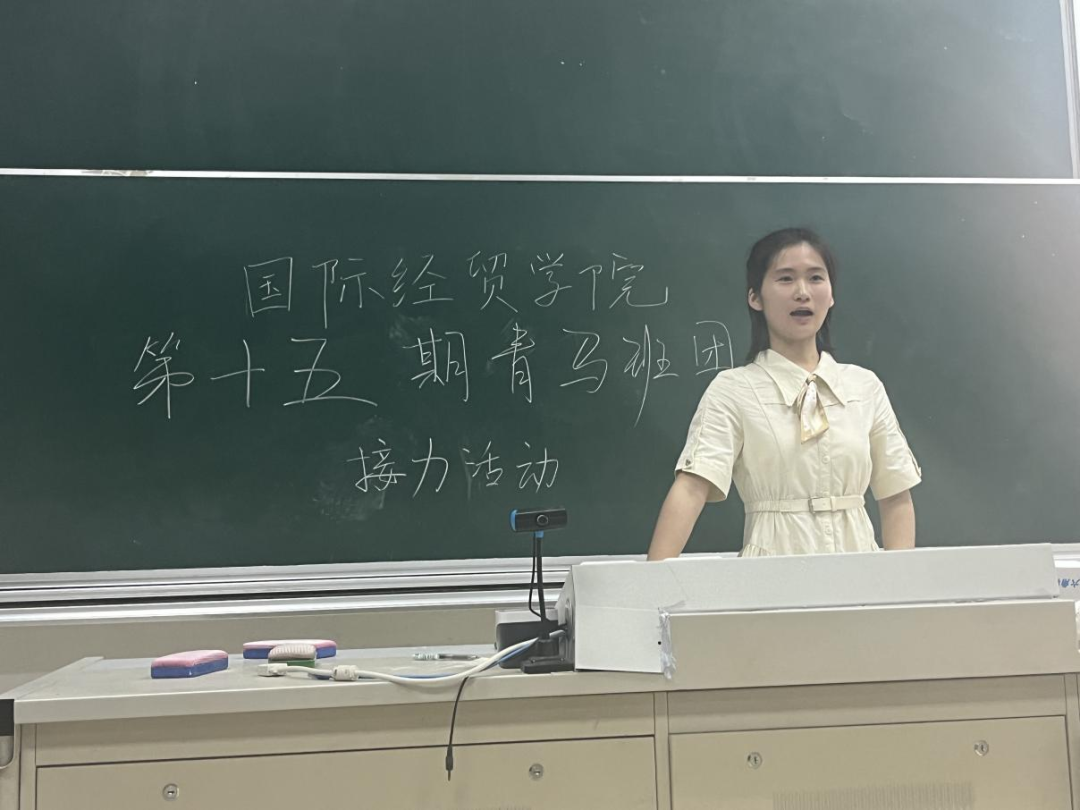 第十五期青马班于德经楼101教室举行了党史学习教育、团课接力主题活动。各小组分别派代表进行了团课分享。