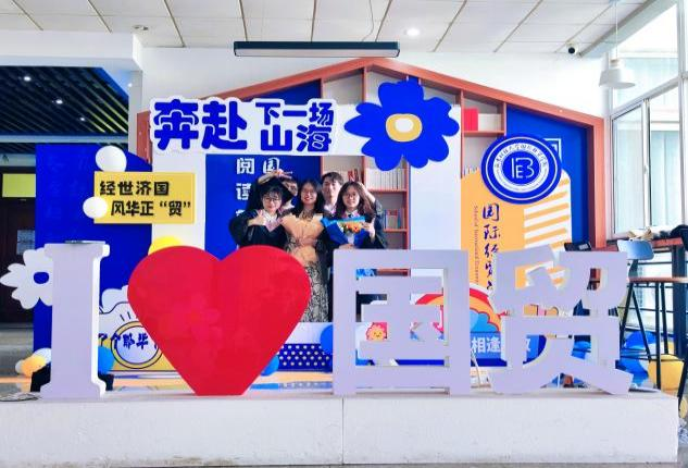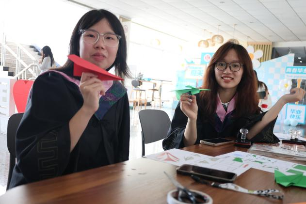 在折纸飞机环节,毕业生们放飞印有“经世济国”“风华正贸”字样的纸飞机,放飞自己的“青春”“梦想”,奔赴下一场山海。
