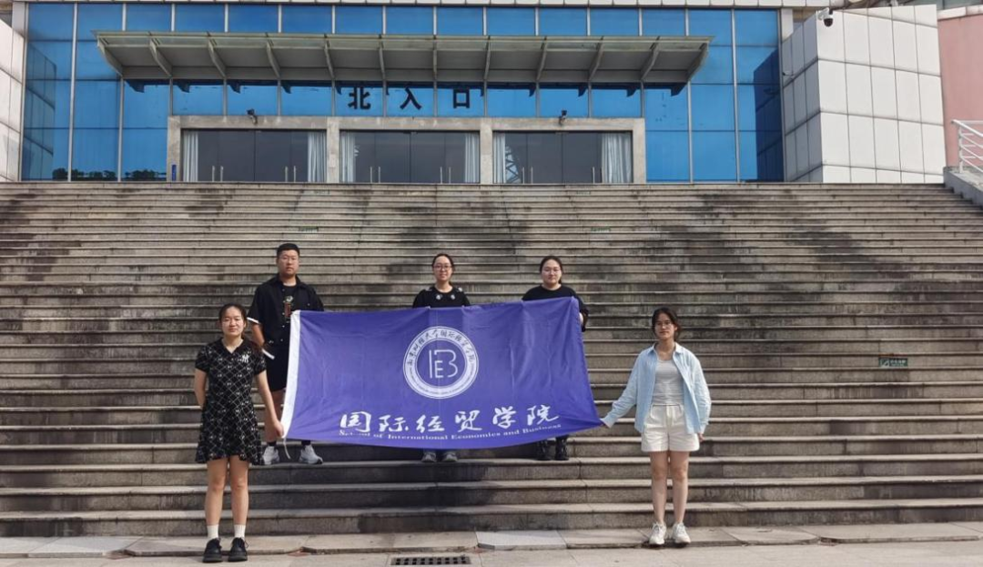 图为团队成员在大学校园向同学开展采访 7月3日 施欣艺/摄