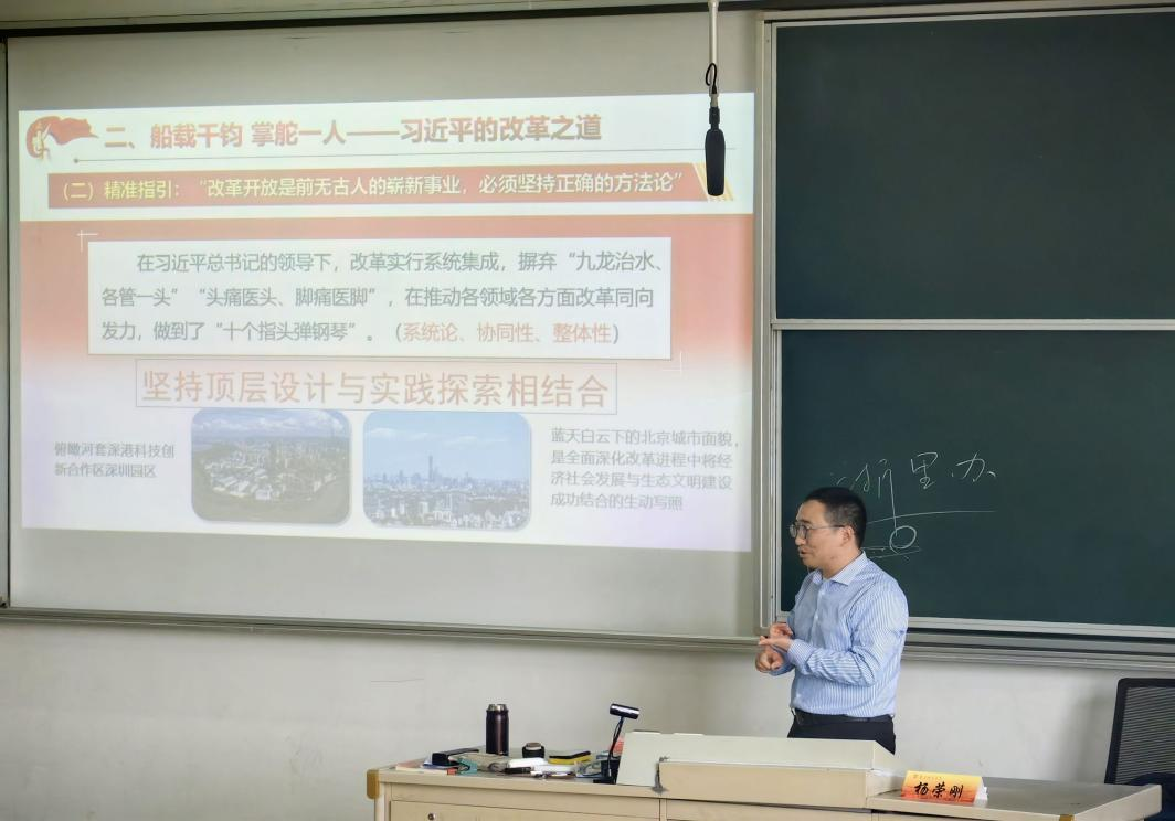 随后,杨荣刚教授围绕党的二十届三中全会展开了一系列的论述。在课堂中,杨教授从四个方面——意义非凡的三个三中全会、习近平总书记的改革之道、聚焦党的二十届三中全会以及读懂《决定》新一轮改革战略重点展开了讲解。