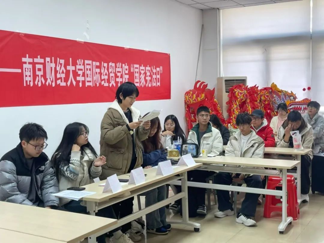 活动伊始,主持人王泓文同学带领同学们进行“宪法晨读”活动,同学们声音洪亮,逐字逐句认真朗读宪法条文,深刻领悟了宪法作为国家根本大法的精神实质,以及宪法在日常生活中如何保障公民的权利和规范国家权力的运行。在《宪法伴我成长》歌曲传唱环节,各位同学激情歌唱,以歌声为载体,弘扬宪法精神,同时调动同学们学习宪法的积极性。随后,进入“宪法知识抢答”环节,此环节的题目涵盖了宪法历史、公民权利义务、宪法修正案等多个方面。在紧张刺激的抢答环节中,同学们积极参与答题,展现出扎实的宪法知识储备和敏捷的思维能力。