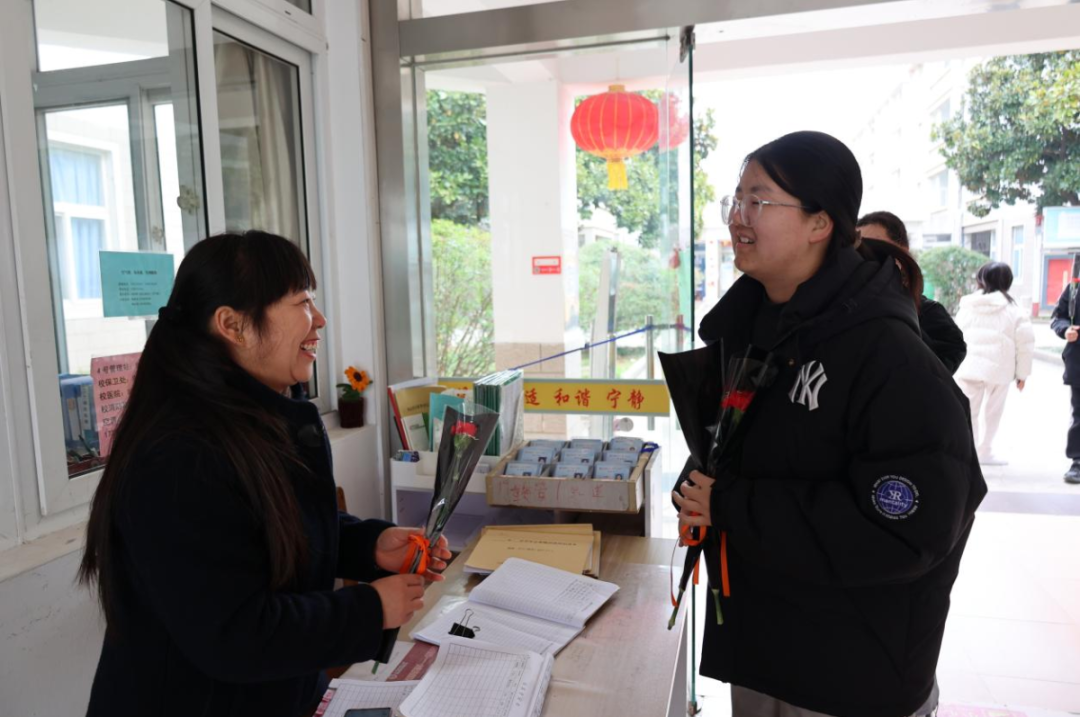 活动当天,学生代表们手持红色康乃馨来到徳经楼,为学院女教师们送上节日最真挚的祝福,感谢她们在过去的时间里坚守岗位,默默付出,用耐心和细心,为学生的发展提供了坚实的支持和帮助。老师们接过花束,满脸惊喜,随即与同学们亲切交流,询问学习和生活情况,叮嘱大家珍惜大学时光,专注学习,提升技能,全面发展。随后,同学们来到了宿管站,感谢阿姨们日夜守护着学生的安全与生活。阿姨们接过鲜花,与同学们分享起了以前的趣事,房间里一片欢声笑语。