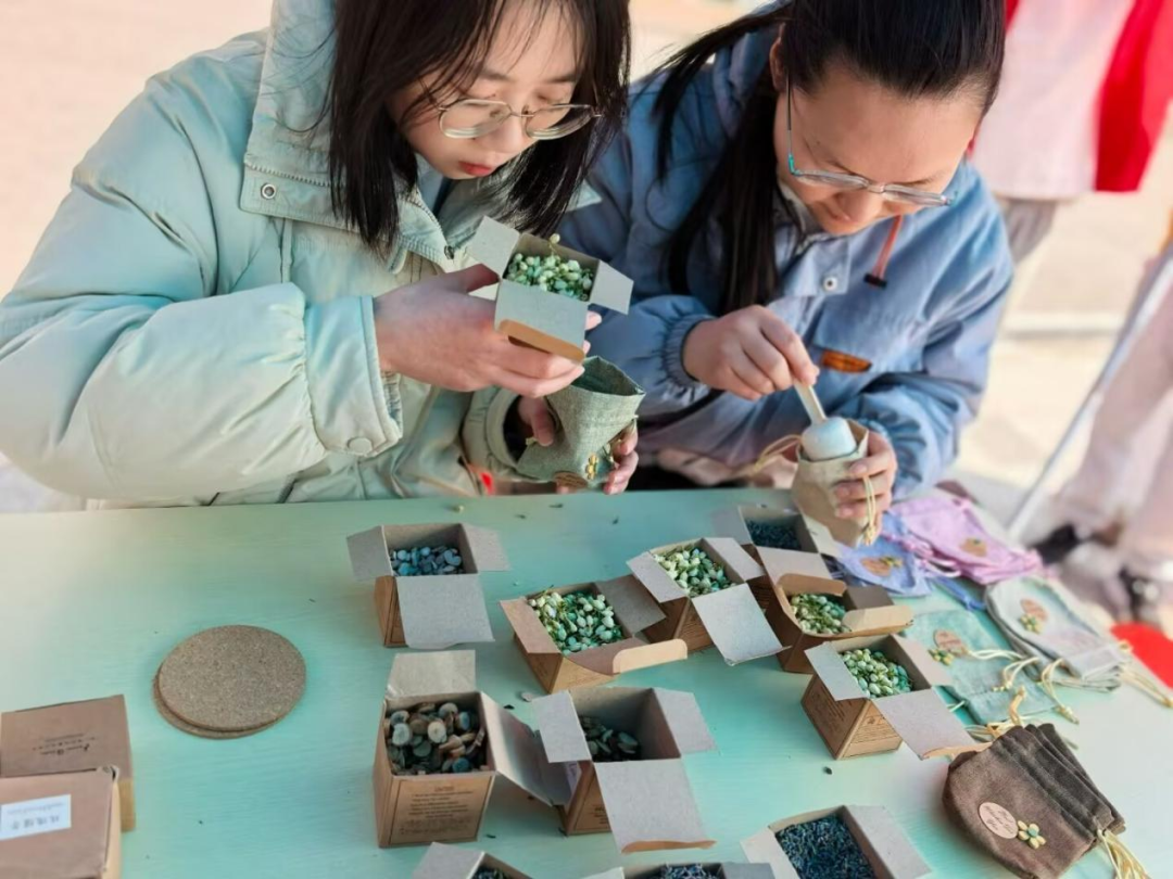 活动伊始,在“香囊手作区”,一些参与者飞针走线,将布料边缘细密缝合,装入精选的薰衣草、桂枝等天然药材后,还不忘系上一个俏皮的蝴蝶结;一些同学虽手法稍显生疏,但在志愿者的耐心指导下,也逐渐掌握了技巧,最终完成了自己的作品。一个个简单的手工香囊,中医药文化与手工制作的结合让睡眠健康焕发新魅力,也承载着同学们对优质睡眠的美好期许。