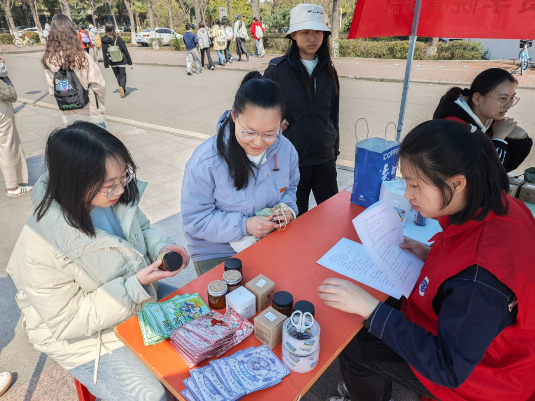 青年志愿者们在中苑食堂门口开展了志愿活动。通过"DIY安眠香囊""趣味拼图挑战""睡眠知识竞答""你划我猜"四大沉浸式体验,将科学睡眠理念化作生活小确幸,吸引师生在春日的暖阳里,共赴一场关于安眠的优雅修行。