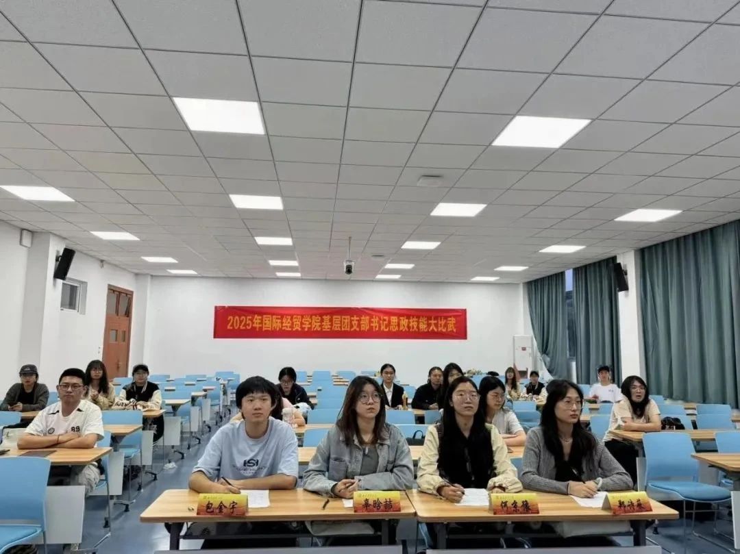 本次思政技能大比武中,团支部书记们紧扣时代主题,围绕党的二十大精神、青年使命担当、红色文化传承等内容,结合自身学习和工作实际,以生动的案例、鲜活的语言、新颖的形式,为现场观众带来一堂堂别开生面的思政微团课。贸经 2402团支部周添翼以 “青春之我挺膺中国式现代化 —— 争做‘五个模范’的时代先锋” 为题,结合乡村振兴实践,讲述青年在产业创新、基层服务中勇挑重担的故事,呼吁以理想信念为帆、以实干奋斗为桨,在推进中国式现代化中争做 “五个模范”,展现新时代青年挺膺担当的精神风貌。