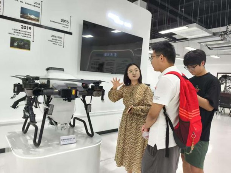在前期充分准备与协调下,实践团全员明确分工,积极对接企业、查阅行业资料、制定调研提纲。团队由6名成员组成,分为联络组、资料组、记录组和汇报组,确保调研工作有序高效进行。调研当天,在田女士的热情接待下,队员们有序参观了拓攻公司的研发展区与产品展示区,深入了解无人机在农业植保、物流运输、电力巡检等多个领域的前沿应用。