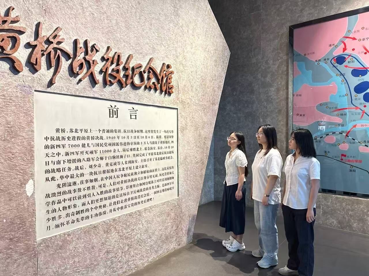 “烽火黄桥,赤心传薪”暑期实践团队成员们怀着崇敬之心走进新四军黄桥战役纪念馆。在这片承载着红色记忆的土地上,大家不仅聆听着1940年黄桥战役中,军民同心、以少胜多的英雄史诗,更深入探寻了黄桥烧饼与战役的深厚渊源——当年,正是这一个个热乎乎的烧饼,从百姓手中传到战士们手中,化作了前线浴血奋战的力量源泉,成为军民鱼水情的生动见证。