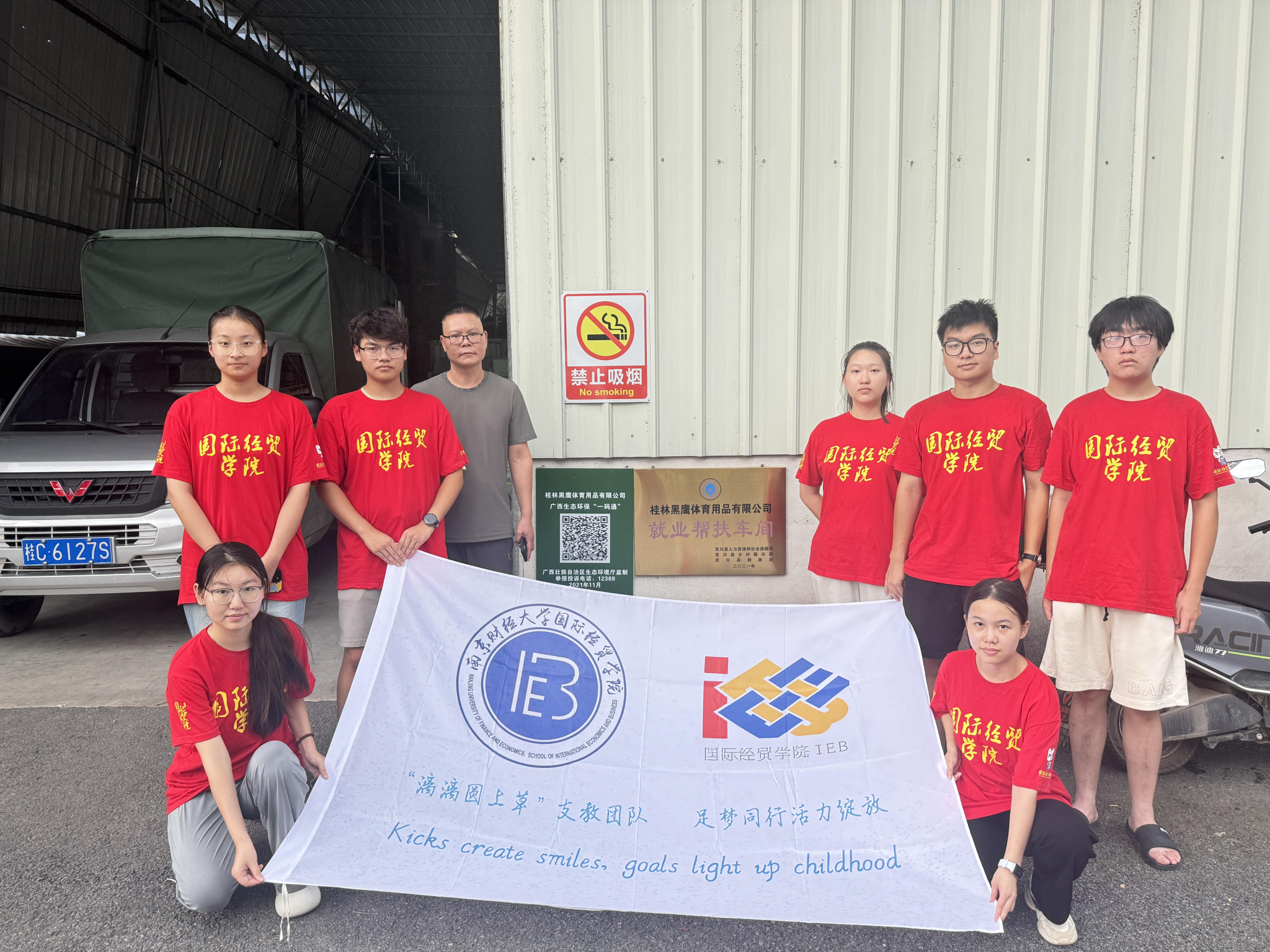 “漓漓圆上草”暑期实践团队奔赴广西壮族自治区桂林市灵川县海洋乡,聚焦当地黑鹰体育用品有限公司的足球外贸业务展开实地调研。这支由国际经济与贸易、市场营销等专业学生组成的团队,在生产线的忙碌与办公室的交流中,解码体育用品从车间到海外的全链条,感受中小外贸企业在产业帮扶中的成长韧性。