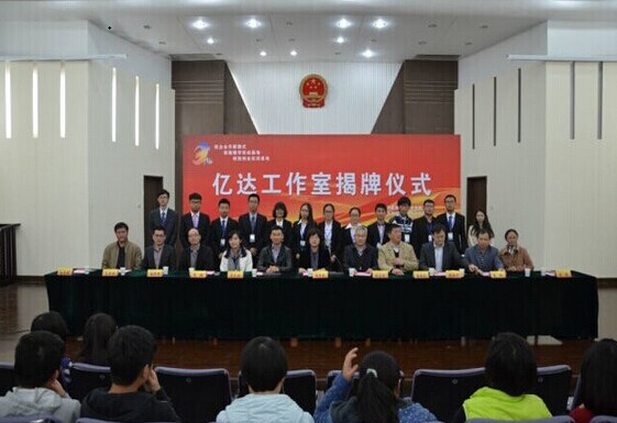 国泰亿达董事长才东升先生发言表示“早就有这样的想法,公司将致力于与大学的合作,让学生了解到社会和企业需要怎样的人才,促使高校培养出更多符合我国发展要求的实践性、创新性人才”。最后,邱伟芬副校长和国泰亿达董事长才东升先生一同为亿达工作室揭牌,并表示对双方合作愉快互进双赢的美好期望。国泰亿达公司人事主管李瑾女士为南财大亿达工作室颁发开办购置金,亿达工作室正式挂牌成立。