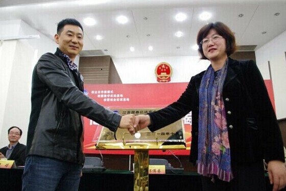 与国泰亿达实业有限公司合作项目启动大会在我校仙林校区法政学科楼模拟法庭成功召开。江苏国泰亿达实业有限公司董事长才东升先生、人事主管李瑾女士,色色动漫