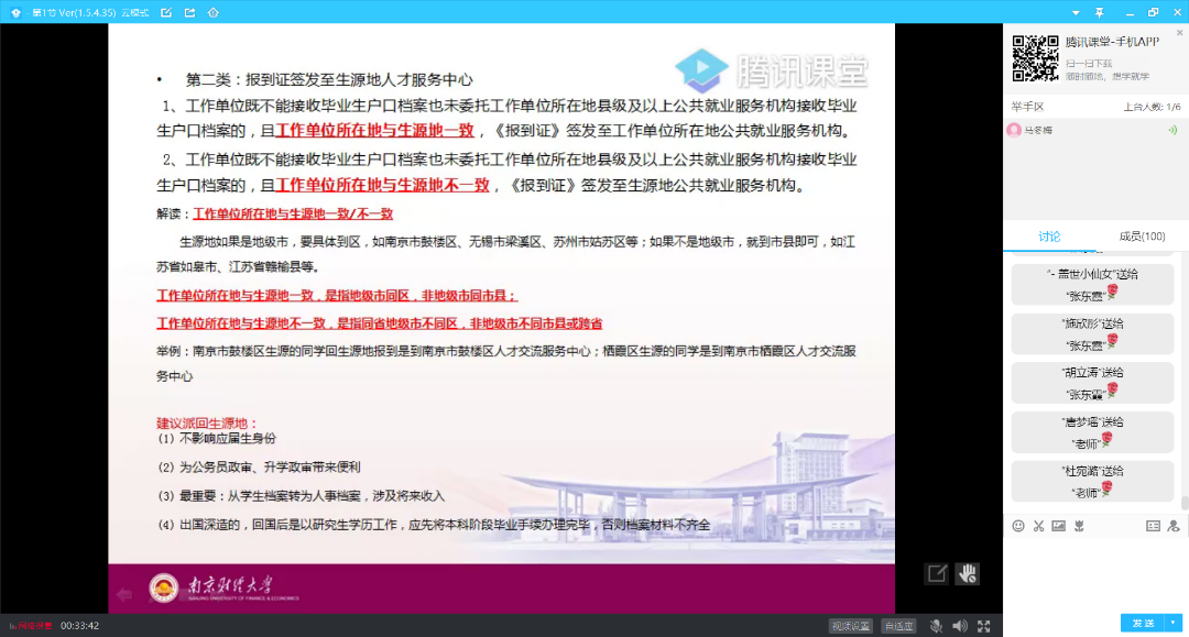 首先,张老师详细讲解了就业派遣的意义和就业派遣分类,使同学们对就业派遣有了更加清晰全面的了解,同时也帮助同学们进一步端正自己的择业观。直播结束后张老师还针对部分同学的咨询进行了一对一的解答并给出了解决措施。