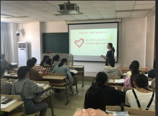 在4月25日于专一115开展了以“奋斗的青春最美丽”为主题的苏北计划、西部计划动员大会,由2015级学生党支部书记董敏老师主持大会,全体2015级毕业生参加此次大会。