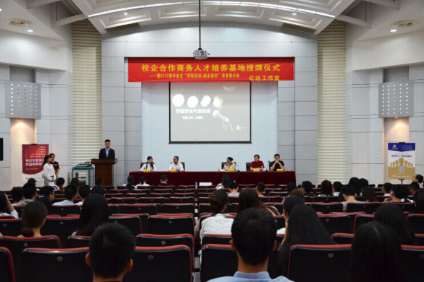 牵头工商管理学院、经济学院、外语学院、营销与物流学院、新闻学院六大学院与焦点科技旗下焦点商学院分别于专一、二报告厅举行了两场校企合作商务人才培训基地授牌仪式。就业指导中心副处长王成杰、焦点商学院院长姚俊、泽朗医药董事长刘东锋先生及六学院分党委副书记出席此次活动。