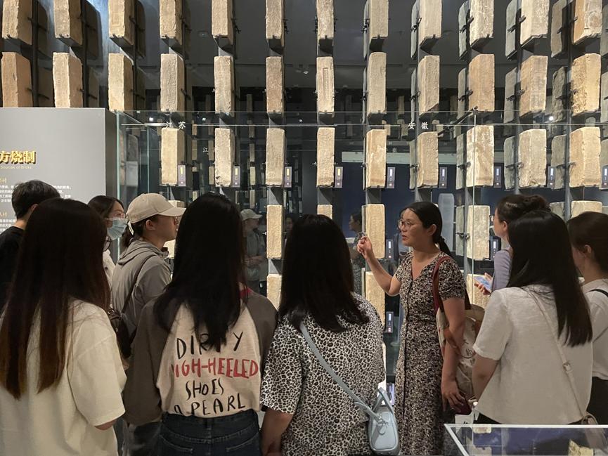 的学生党支部书记们带领毕业生党员赴南京城墙博物馆开启党课研学,感悟城砖精神,汲取廉政智慧。在“旷世城垣”的展厅内,七百多块城砖构成的城砖列阵,严肃震撼地排列在展厅内,向每一位党员诠释着责任的内涵。支部书记张朋朋老师向大家讲述到:“栉风沐雨六百多年的明城墙之所以雄伟坚固,与每块城砖背后的勒名以及当时严格的责任制密不可分。这种精确到人的‘物勒工名’制度,有效加强了制砖工序的管理和监督,并很大程度上抑制了贪污腐败。”通过沉浸式的参观学习,毕业生党员们深切感受到了中国廉洁文化的源远流长和博大精深,更加深刻地领会到必须要加强对权利运行的制约和监督,“把权力关进制度的笼子里”。