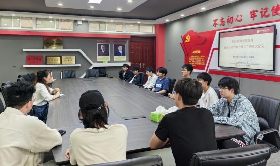 本科生第二党支部书记吴嘉欣组织支部党员上了深入学习”两个确立”的重大意义的主题党课。通过学习,支部党员深刻认识到:“两个确立”、“四个意识”、“四个自信”、“两个维护”是一个有机统一的整体,要贯通起来理解和认识。“两个确立”有着深厚的理论逻辑、实践逻辑和历史逻辑,对于强国建设、民族复兴具有决定性作用,汇聚起实现中华民族伟大复兴的磅礴伟力。