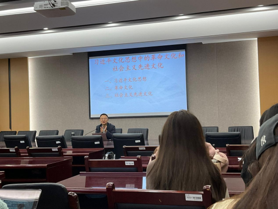 徐刚老师以“习近平文化思想中的革命文化和社会主义先进文化”为主题作主题讲座,紧跟时事,从习近平文化思想、革命文化、社会主义先进文化三个方面展开讲述。徐刚老师以中国近代史谈起,娓娓道来中华文化的发展,以“三纲五常”和“新加坡”为例,鲜明地凸显出文化对一个国家的重要性,从而鼓励学员们了解时事政治,综合发展,树立文化自信。