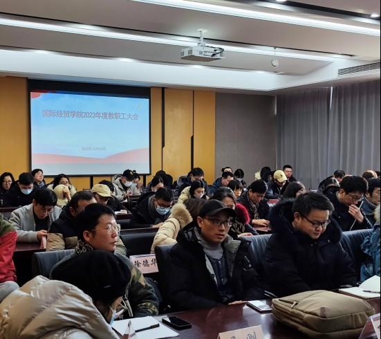 在德经楼308会议室召开2023年度教职工大会,学院领导、全体教职工参加会议,院党委书记周亚芳主持了大会。