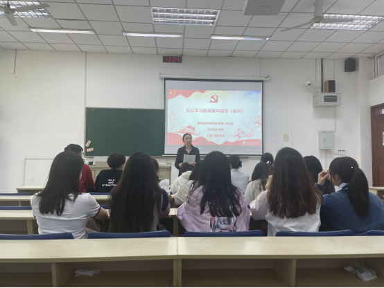 第一党支部在专一108教室开展集中领学。本次会议由支部书记董敏老师主持,支部全体党员参加。