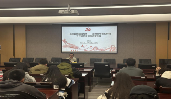 于10月26日在德经楼308会议室开展了题为“一场没有硝烟的战争—谈党员学生如何树立正确的意识形态安全观”的专题讲座。本次党课邀请马克思主义学院教研室主任杨荣刚副教授作为主讲人,为在场的青年学生带来了一场深刻的思想教育和精神洗礼。