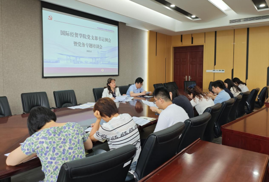 在德经楼308会议室召开党支部书记例会暨党务工作者培训会,总结近期工作并对下一阶段工作进行布置。学院党委书记周亚芳、党委副书记周进进,学院组织员、兼职宣传员、兼职纪检员以及各支部书记参加会议。会议由组织员刘紫月主持。