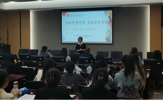 在会议开始前十分钟,参加答辩的学生就已早早来到会场准备,他们各个神采奕奕,胸有成竹,在会议正式开始前,主持人向同学们介绍了本次答辩会的各位评委,三位皆是在学生工作和党务工作方面有着丰富经验的指导老师,同学们也用热烈掌声欢迎评委老师的到来。会议正式开始后,本科生率先开始答辩,个别研究生同学进行线上答辩,每一位同学都尽情地向评委老师展示自己,从学习态度、工作状态、日常生活、思想觉悟等方面讲述自己的努力与成效。三位评委老师在台下耐心倾听,认真思考,对各位同学的答辩给出公正评价。