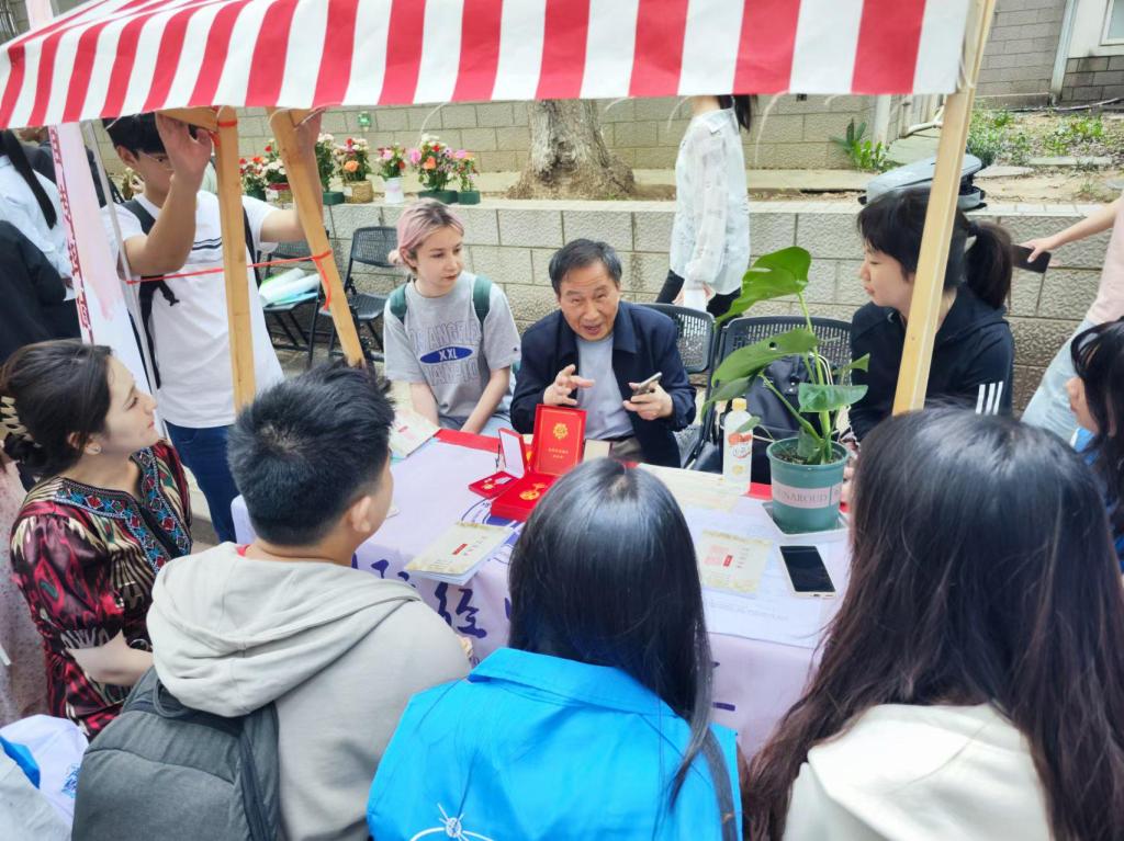 仙林校区中苑社区举办的“首届社区文化节”活动中,刘树铭老师深入学生社区,与青年学子进行了深入的思想交流。在轻松舒适的社区环境中,刘树铭老师细致询问了学生们的学习与生活情况,并对同学们的发展和未来规划提出了建议。活动期间,刘树铭老师展示了许多珍贵的历史物件,如战争时期的好人好事报、《铭记实案录》回忆录、由击落的敌机残骸熔制的飞机模型等老物件,闪亮如新的军功章……刘树铭老师一一做着展示介绍,同学们纷纷被吸引前来,直观感受老一辈的坚韧不屈、初心不改,实现红色精神对大学生的浸润和传承。以老带新畅谈人生跌宕感悟,让大学生获得指引与启发,更好地成长成才。
