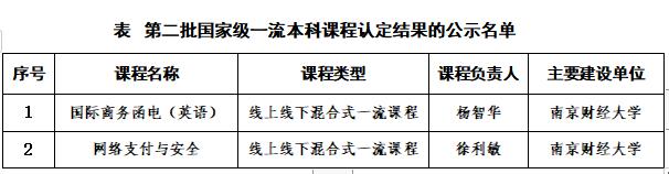 新增《国际商务函电((英语)》《网络支付与安全》两门线上线下混合式国家级一流本科课程。