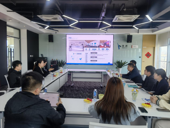为全面贯彻《江苏省“十四五”高等教育发展规划》等文件精神,落实学校关于产教融合协同育人的相关要求,进一步促进访企拓岗促就业专项行动走实走深,3月28日下午,陈启斐副院长一行赴江苏未迟数字技术有限公司洽谈合作事宜。实验室主任李冠艺、国际经济与贸易专业系主任叶迪、电子商务专业系主任吴薇以及三位学生代表参加此次活动。
