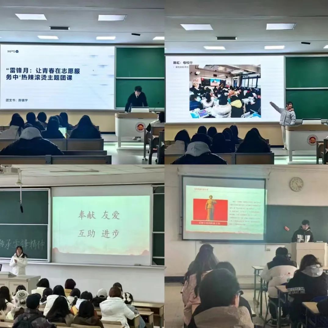 各团支部积极开展雷锋日主题团课活动,重温雷锋事迹,学习雷锋精神。支部同学们热烈讨论了新时代大学生何以践行雷锋精神,不少支部的寒假志愿“红马甲”们分享着自己的志愿服务经历,从腊八节社区施粥到春节街道安全排查,从“云支教”到陪伴失独老人,色色动漫